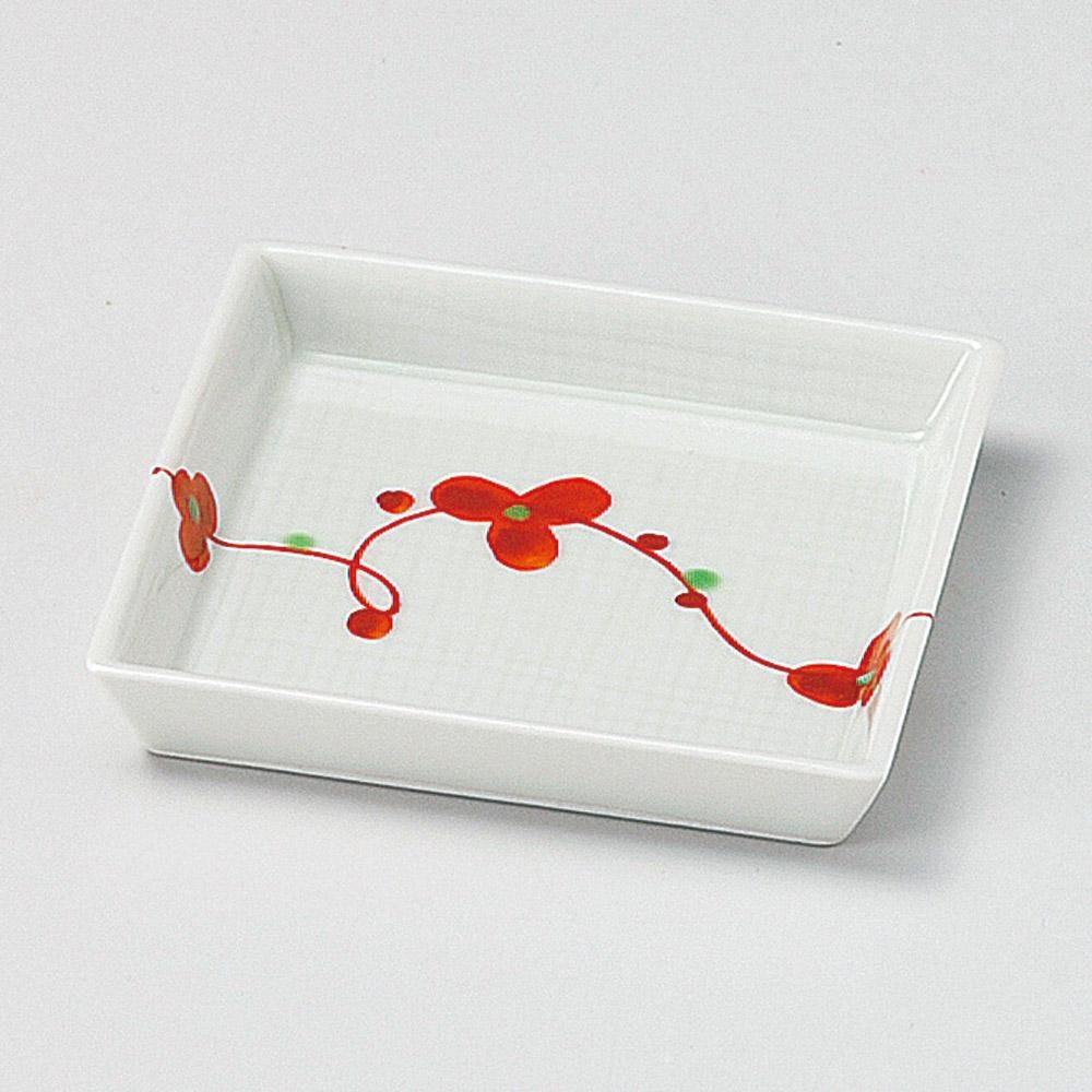 223-4-697 うつわ vol17 帯花紋(赤)角小皿 業務用