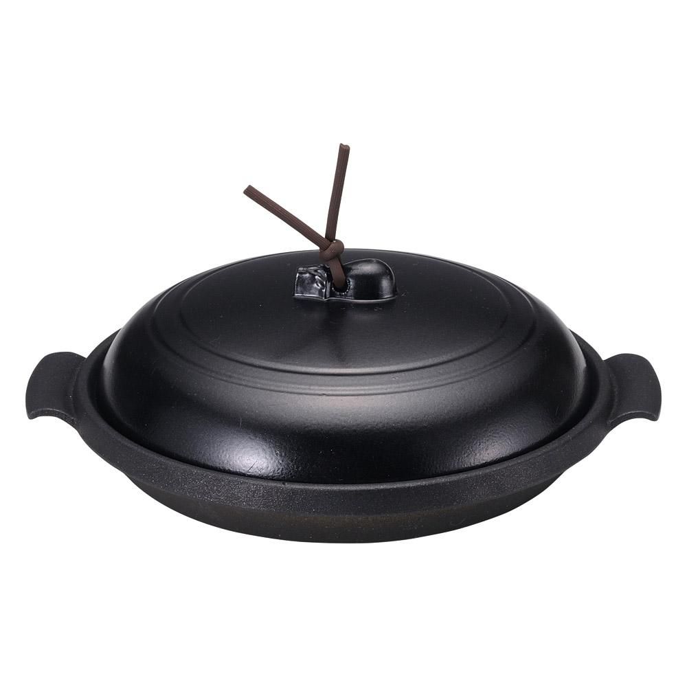 374-16-967 うつわ vol17 19cmやすらぎ丸陶板 浅型 黒 業務用