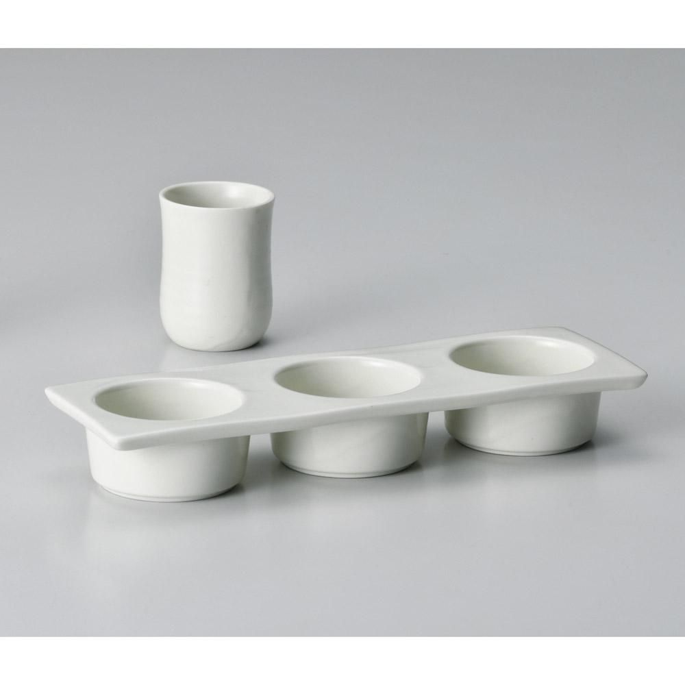 262-12-527 うつわ vol17 利き酒三品トレー(白マット) 業務用