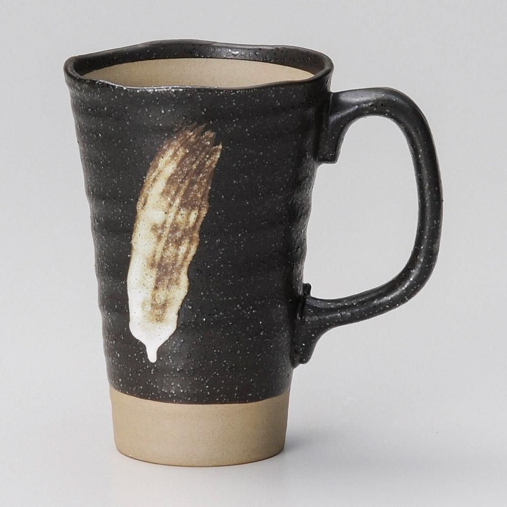 266-12-657 うつわ vol17 黒釉白刷毛ビールジョッキ 業務用