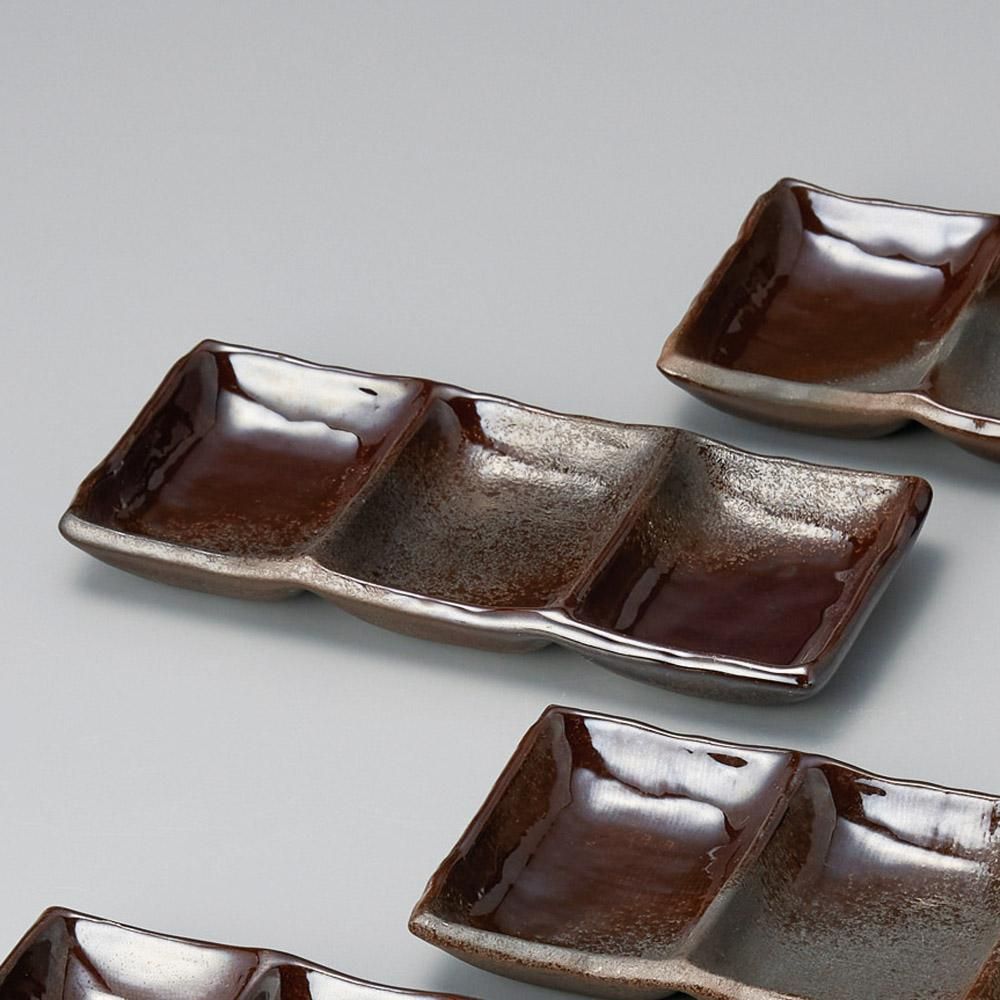 288-25-757 うつわ vol17 備前灰釉3品盛長角皿 業務用