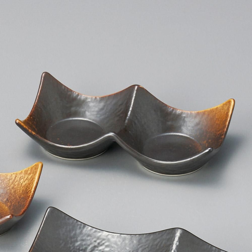 288-42-757 うつわ vol17 焼締(やきしめ)石目2連皿(小) 業務用