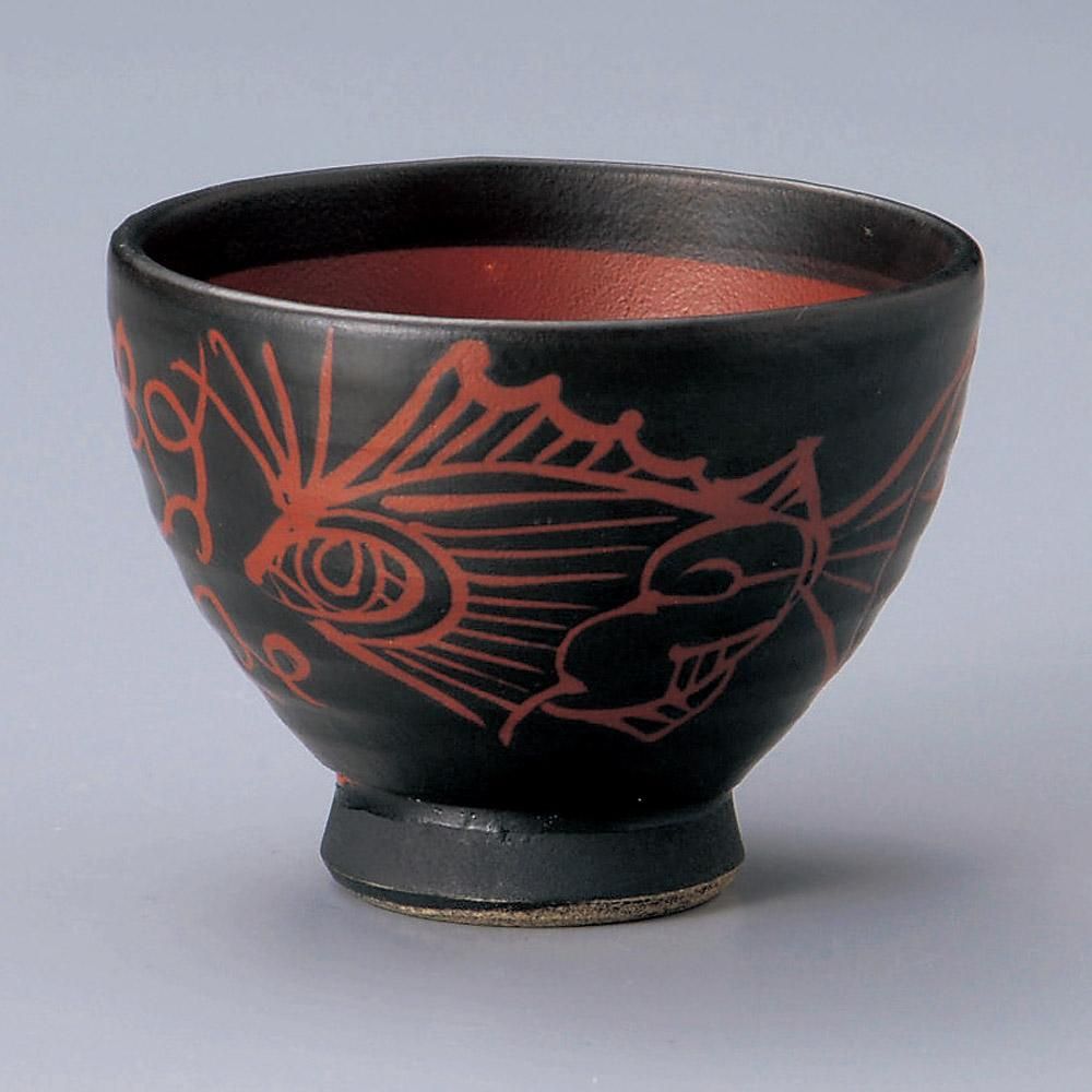 325-5-527 うつわ vol17 鉄釉魚紋高台碗 業務用
