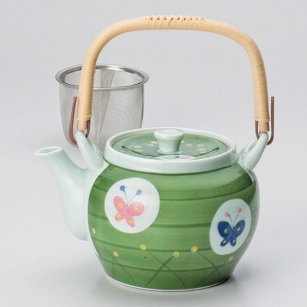 352-20-697 うつわ vol17 グリーン巻蝶U付10号土瓶 業務用