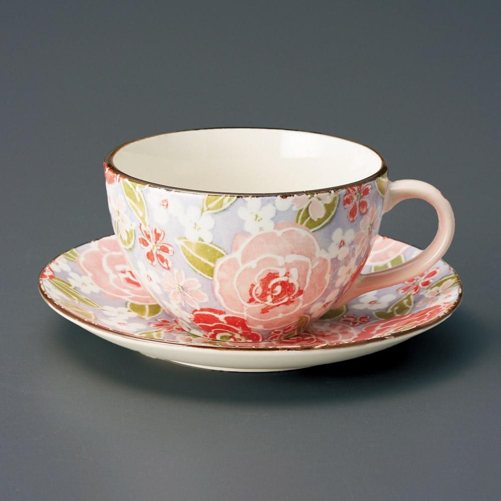 495-73-757 うつわ vol17 色絵バラコーヒー碗皿c/s(ピンク) 業務用