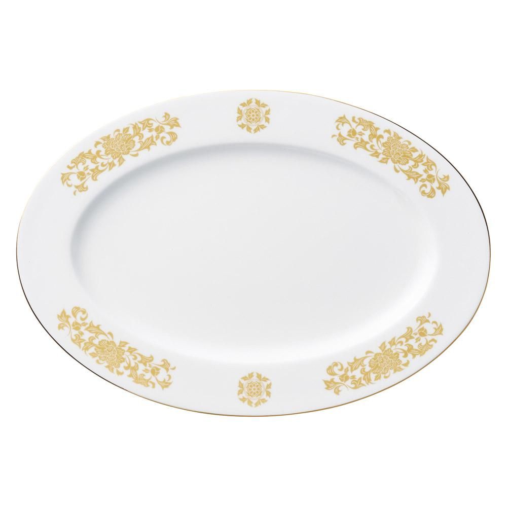 509-9-227 うつわ vol17 ボーンチャイナ 金彩唐草 14吋リムプラター 業務用