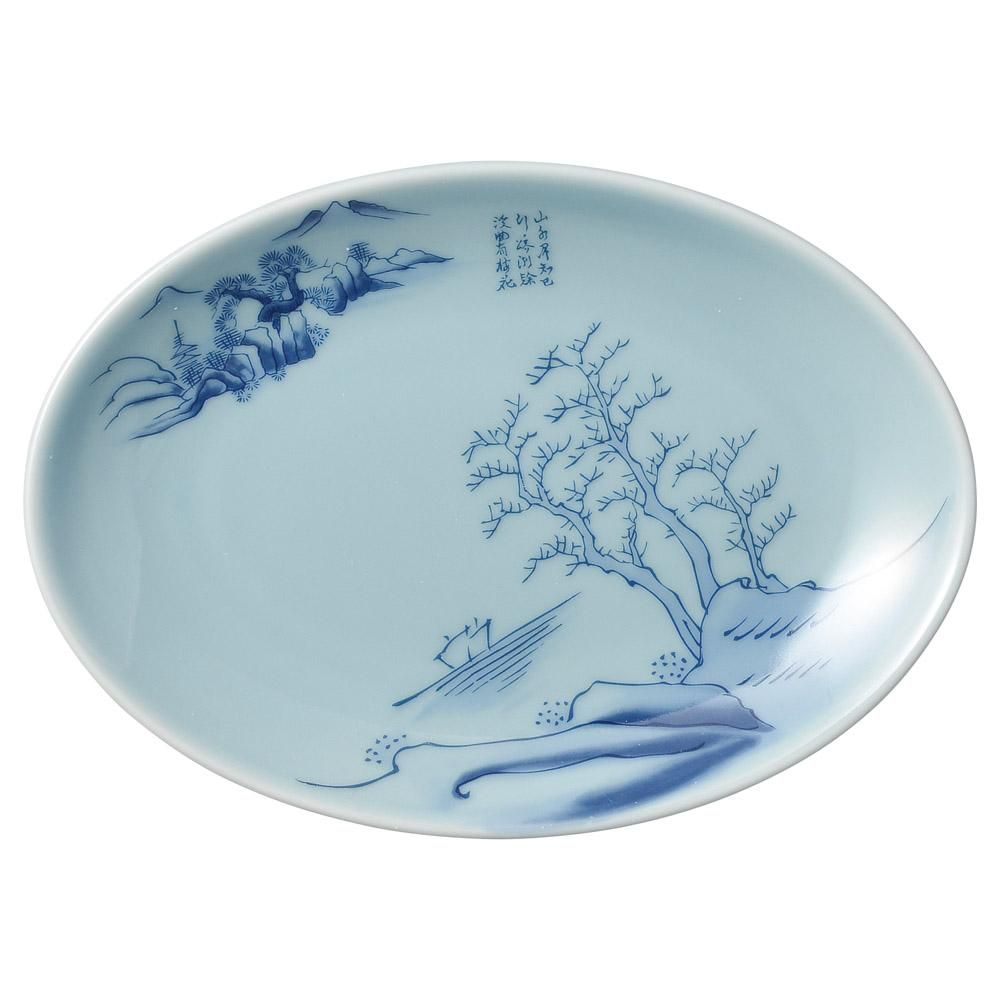 547-61-117 うつわ vol17 青磁上絵山水 8吋メタプラター 業務用