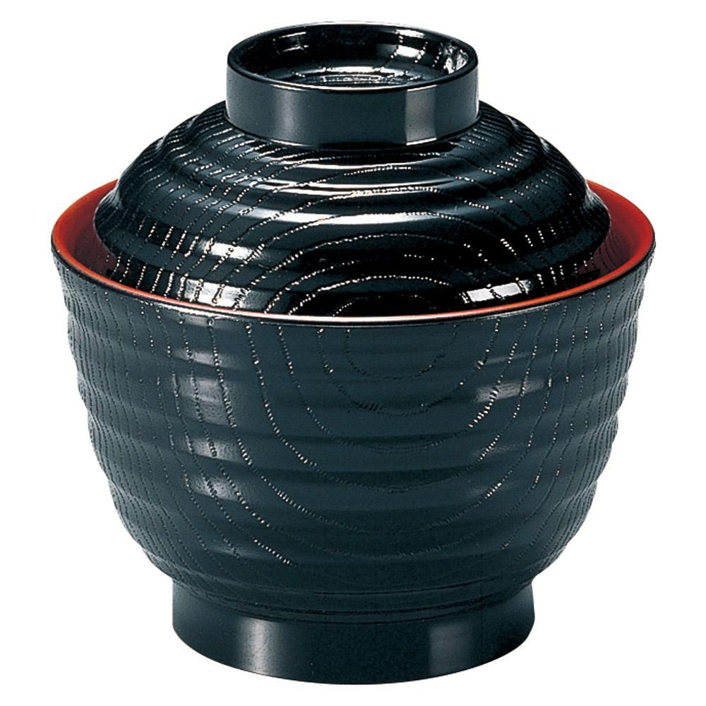 580-31-967 うつわ vol17 [TA]耐熱 3.5寸乱引木目小吸椀 黒内朱 業務用