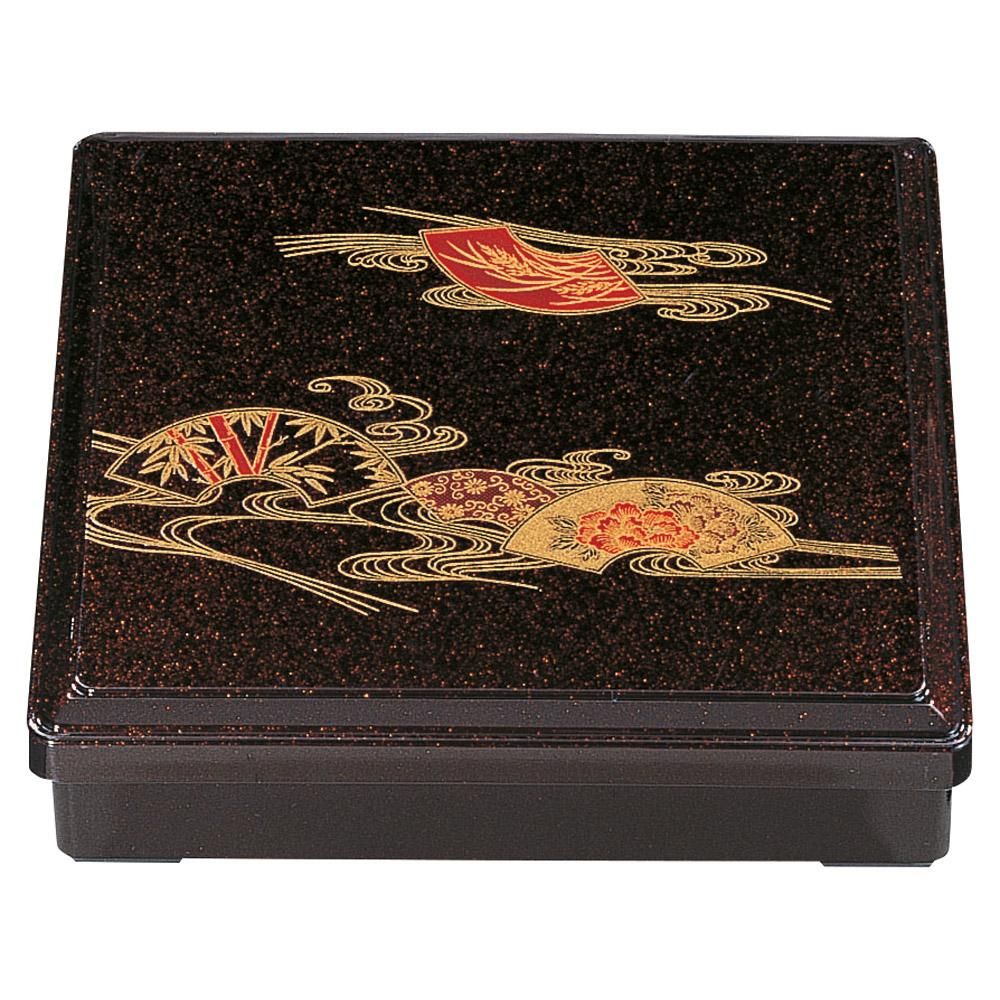 592-16-937 うつわ vol17 [A]D.X8寸角弁当 茶パール扇面 業務用